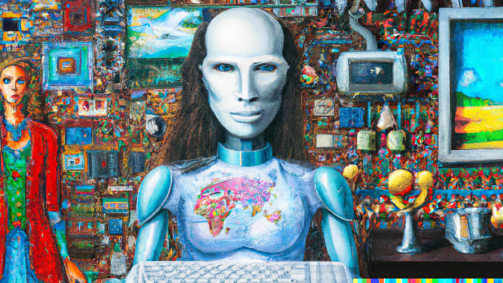 This image was created using OpenAI’s DALL-E2 AI text to image generator. The prompt? “Award-winning painting with title “The Year of the AI Revolution”.